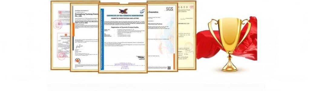 Yucheng holds certifications for ISO 22716, GMP, FDA, Sedex, and BSCI. Our factory has undergone third-party audits for quality and CPSR by ITS, B.V., SGS, IFSCC, and others.