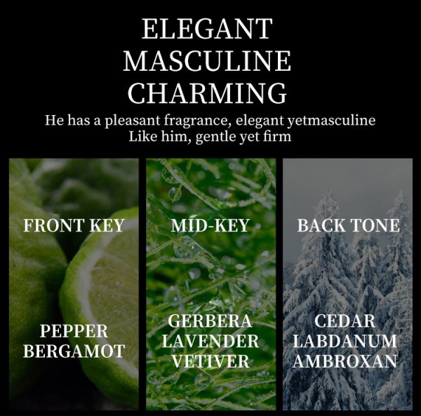 | effect | He has a pleasant fragrance, elegant yetmasculine |